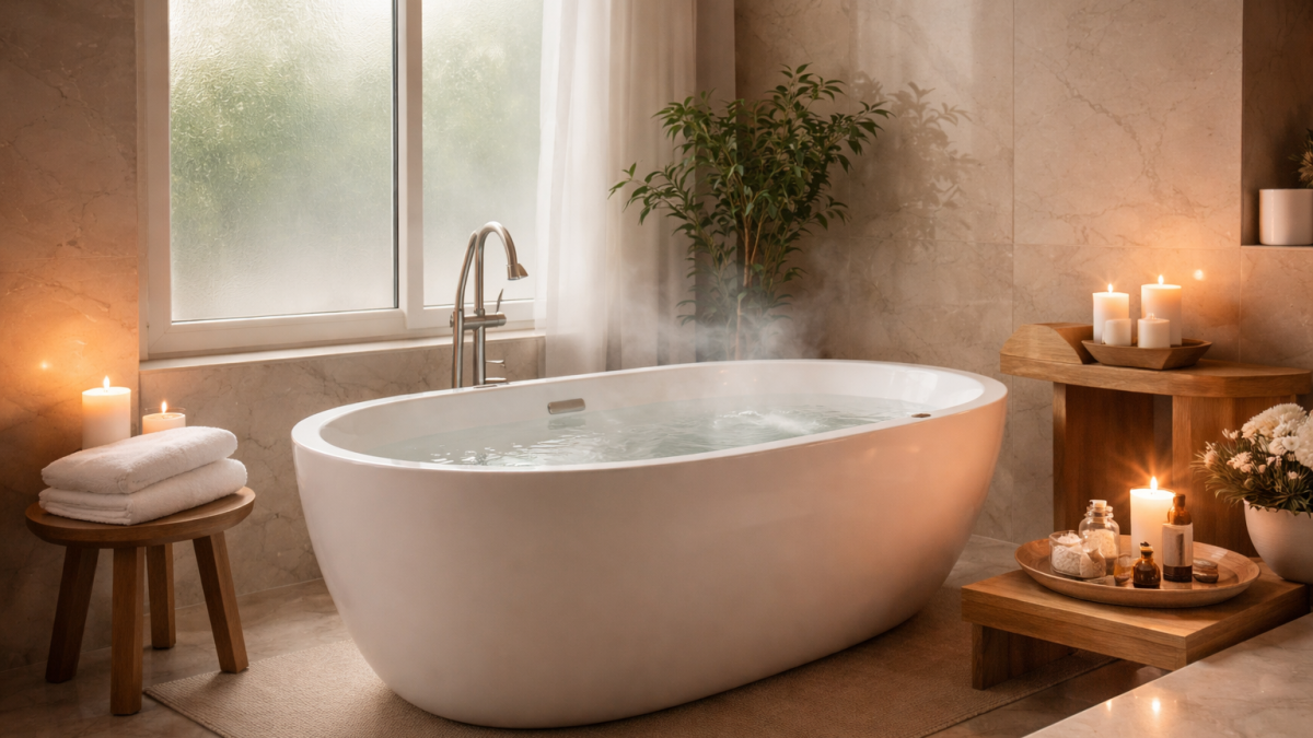 Setelah hari panjang yang melelahkan, sensasi tubuh perlahan rileks di dalam bathtub terasa seperti reset alami.